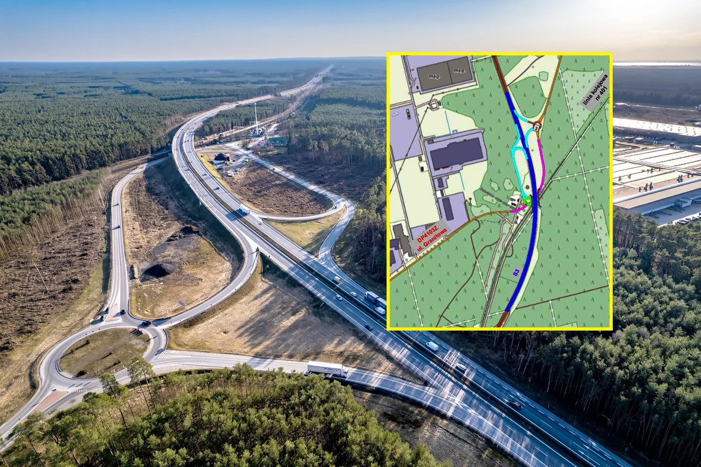Generalna Dyrekcja Dróg Krajowych i Autostrad poinformowała o otrzymaniu decyzji środowiskowej na rozbudowę węzła drogowego Goleniów Południe na drodze ekspresowej S3. Inwestycja zakłada m.in. zastąpienie obecnych wiaduktów nad linią kolejową nowymi obiektami, które są dostosowane do współczesnych standardów. Dotychczasowa konstrukcja powstała bowiem w latach 1977-1979.
