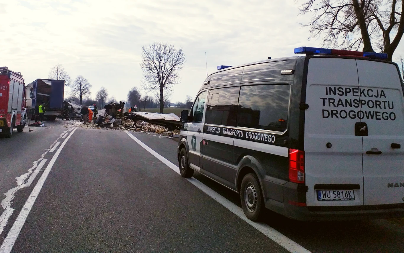 Na drodze krajowej nr 73 czołowo zderzyły się dwa samochody ciężarowe. Niestety, jeden z kierowców zginął. Inspektorzy z jędrzejowskiego oddziału Inspekcji Transportu Drogowego pobrali i zabezpieczyli dane z tachografów. Pomogą one w ustaleniu okoliczności wypadku.