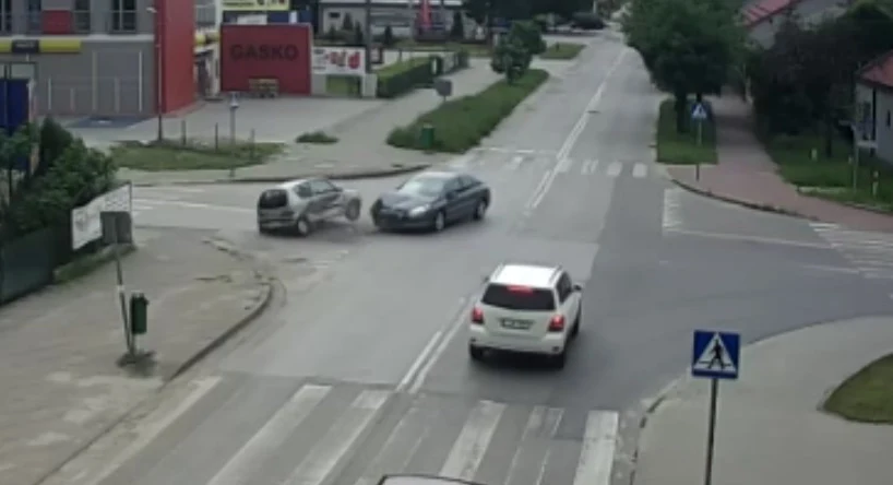 Do groźnie wyglądającej kolizji doprowadził kierujący, który zignorował znak ustąp pierwszeństwa.