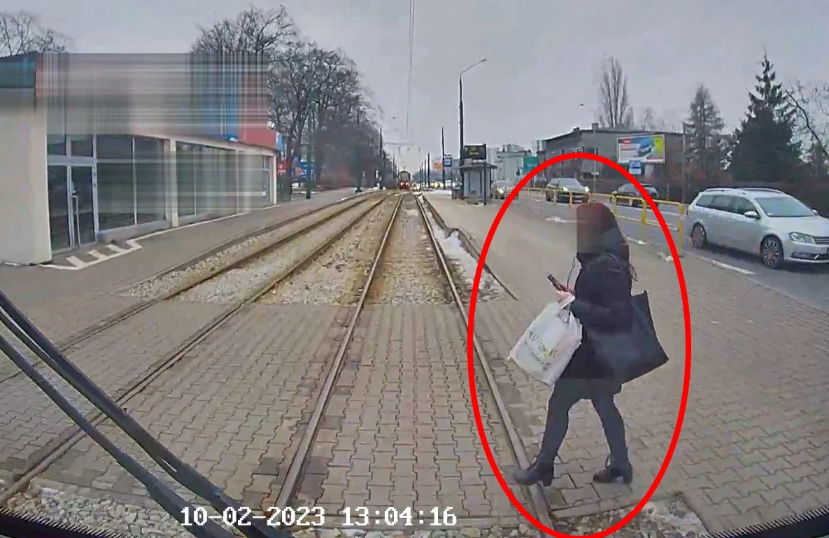 Na filmie widać, jak piesza z telefonem w ręku idzie chodnikiem wzdłuż torów. Następnie bez ostrzeżenia, bez spojrzenia w bok, po prostu w skręca w lewo wprost pod tramwaj. Zagrożenie dostrzega w ostatniej chwili, próbuje się ratować, ale jest już za późno. Mimo wdrożenia awaryjnego hamowania, tramwaj uderza kobietę.