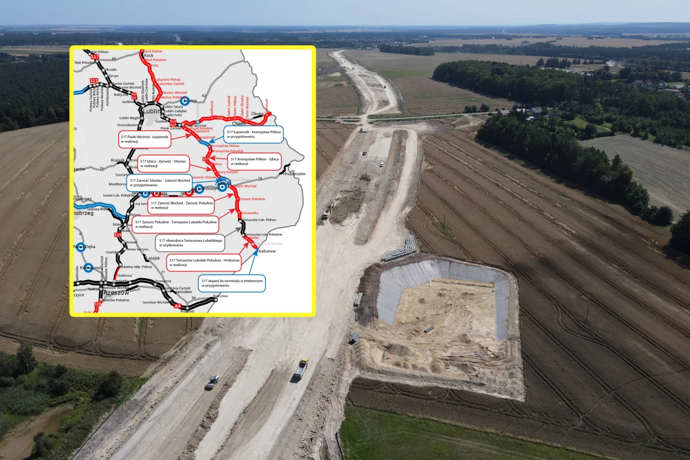 Na fragmencie drogi ekspresowej S17 w rejonie Zamościa prowadzone są prace przygotowawcze, obejmujące m.in. przebudowę podziemnych sieci uzbrojenia terenu oraz rozbiórki budynków. Na odcinku Tomaszów Lubelski - Hrebenne realizowane są natomiast roboty ziemne, wymiana gruntu i wzmocnienia podłoża, a także przebudowa sieci uzbrojenia terenu oraz budowa wiaduktów i przejść dla zwierząt.