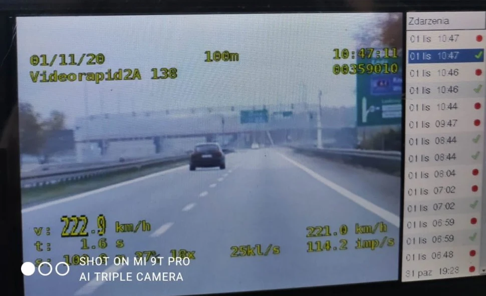 26-letni kierujący audi jechał lewym pasem ruchu po drodze S1, mając na liczniku ponad 222 km/h w miejscu, gdzie wolno jechać maksymalnie 120 km/h. Jego jazdę zakończyła interwencja policjantów. Mężczyzna za popełnione wykroczenia otrzymał wysoki mandat oraz 12 punktów karnych.