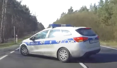 Policjant skręca w lewo, kierowca wyprzedza. Kto dostanie mandat?