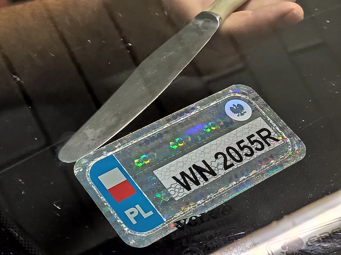 Tak skomplikowana budowa zabezpiecza samochód przed podrobieniem numerów legalizacyjnych. Zazwyczaj, gdy usuwamy naklejkę bez przygotowania, możemy zauważyć, że rozdziela się ona na dwie warstwy.