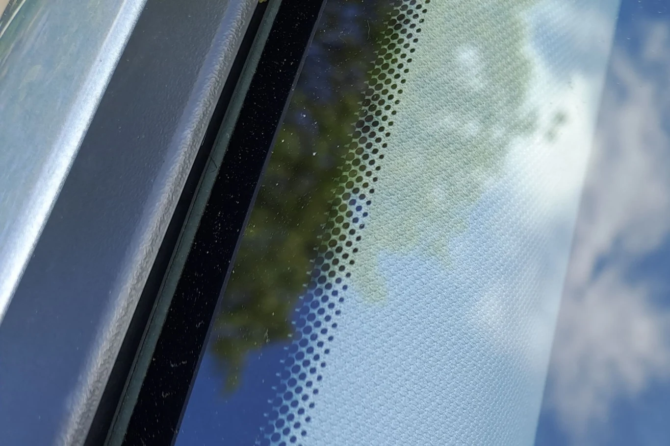 Czarne kropki pojawiające się wokół miejsca montażu lusterka wstecznego są nakładane z myślą o kierowcy. Zapobiegają oślepianiu przez intensywne promienie słoneczne. Występują w miejscach, których nie da się zasłonić osłonami przeciwsłonecznymi.
