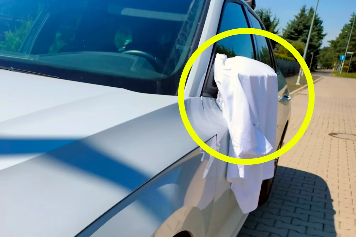 Widzisz biały ręcznik na lusterku? To ważny znak dla kierowcy