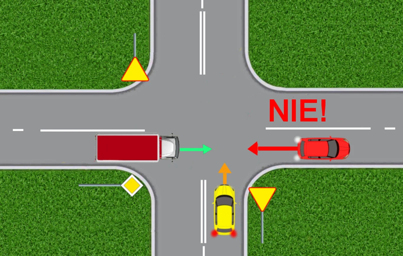 Podobnie jak dozwolone jest cofanie, gdy przegapiliśmy zjazd do posesji, to nie możemy wycofać, jeśli przegapiliśmy skręt na skrzyżowaniu, ponieważ to w oczywisty sposób stwarzałoby zagrożenie w ruchu drogowym.
