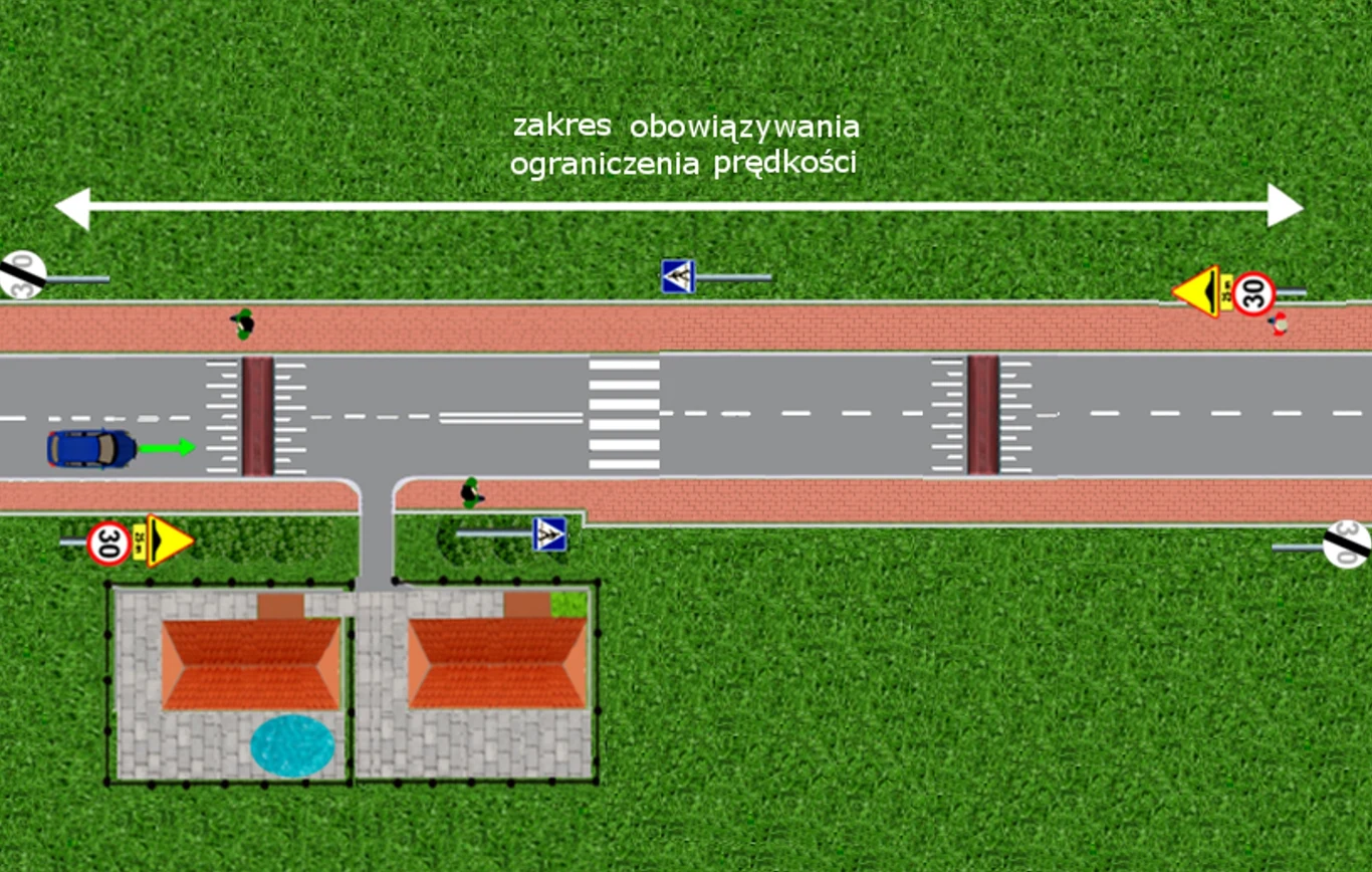 - Do którego miejsca obowiązuje ograniczenie prędkości przed progiem zwalniającym?