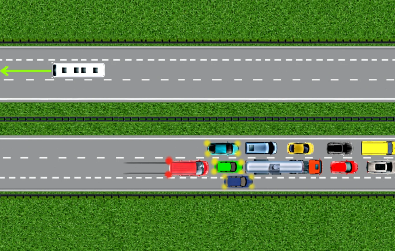 Dostrzegasz na autostradzie stojące samochody:
