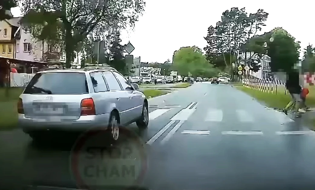 Niestety niektórzy kierowcy nie potrafią tego zrozumieć i przede wszystkim zaakceptować, czego przykładem jest kierowca Audi, który nie wytrzymał i postanowił wyprzedzać samochody na przejściu dla pieszych i skrzyżowaniu. Jego brawurowa jazda niemal zakończyła się jednak na znaku, kiedy po gwałtownym manewrze wyprzedzania musiał... hamować przed kolejnym przejściem. Niestety droga była mokra, a pirat nie zmieścił się na drodze i ocierając się o znak przeleciał poboczem, omijając samochód, który zatrzymał się, by przepuścić pieszych. Całą sytuację widać na nagraniu.