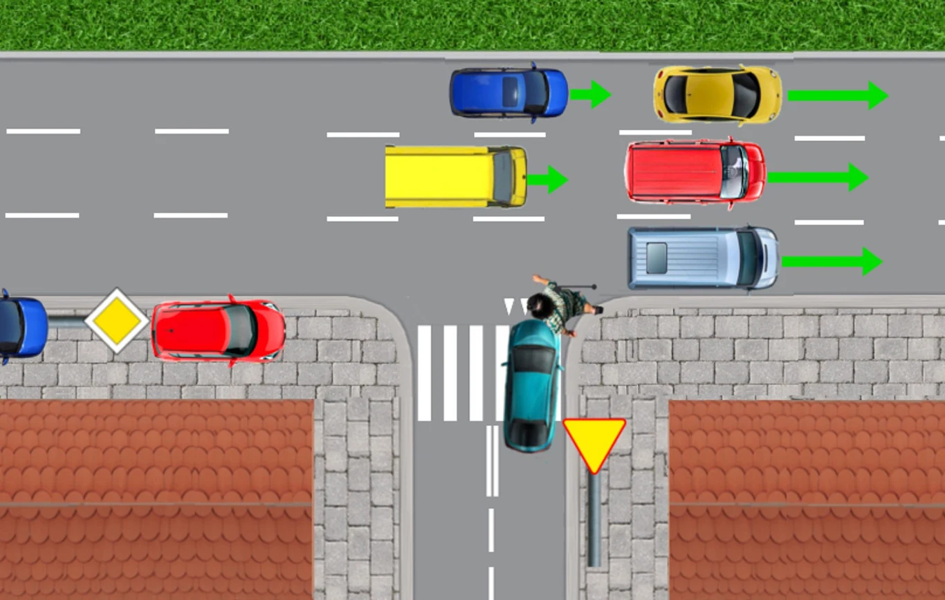 Nie było to łatwe, a w dodatku kierująca musiała dojechać do drogi z pierwszeństwem i jednocześnie zatrzymać swoje auto na przejściu dla pieszych. W przeciwnym razie nie widziałaby ruchu na drodze poprzecznej, bo widoczność ograniczały dodatkowo samochody zaparkowane na chodniku.