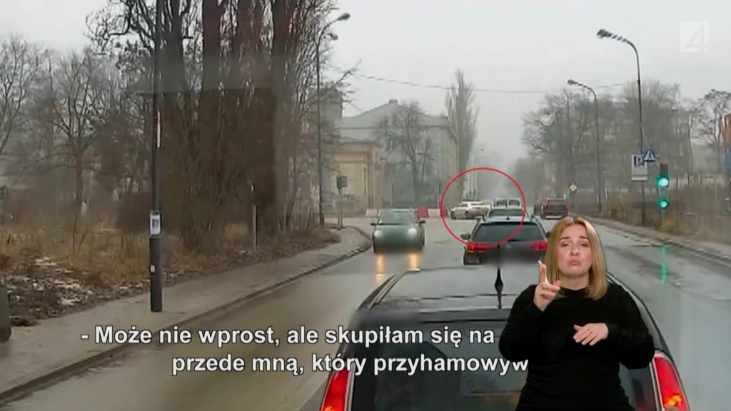 Kierowca podczas jazdy musi być skupiony na drodze, a nie tylko na poprzedzającym samochodzie. Przekonała się o tym kobieta, która nie zachowała należytej uwagi i wjechała w prawidłowo jadący przez skrzyżowanie samochód.