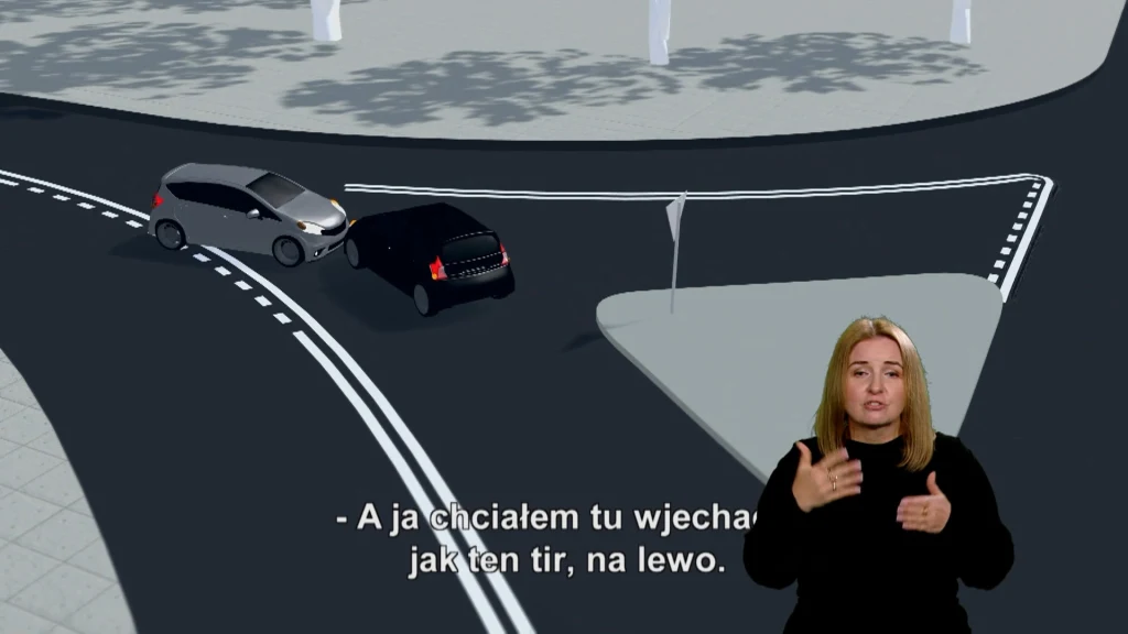 Dwaj kierowcy skręcali w lewo na trójkątnym skrzyżowaniu. Niestety tylko jeden z nich wykonał ten manewr poprawnie. Przez błąd prowadzącego Volkswagena doszło do kolizji.