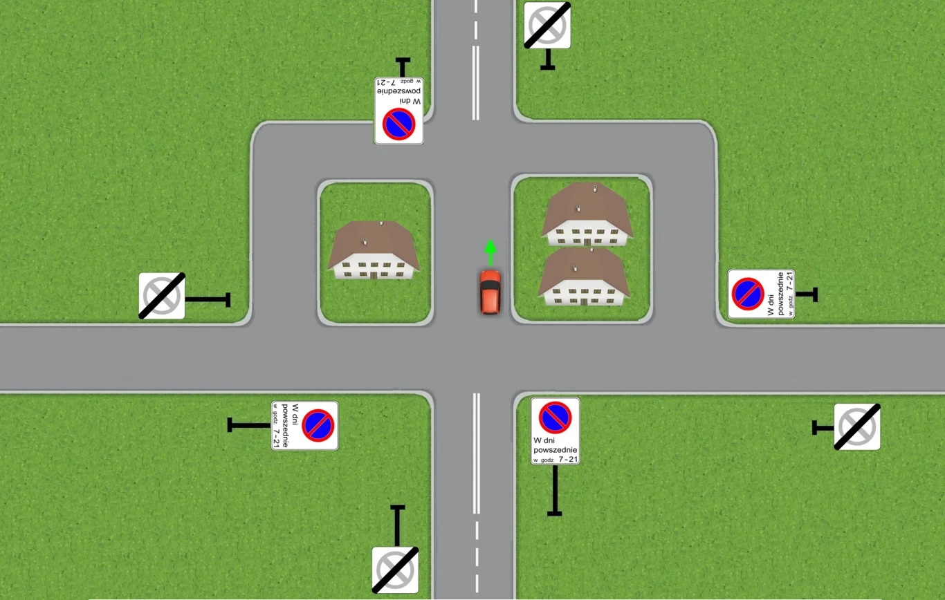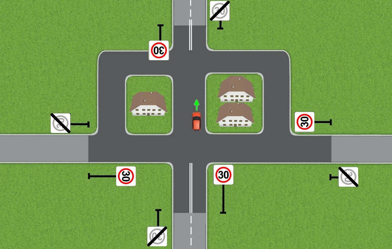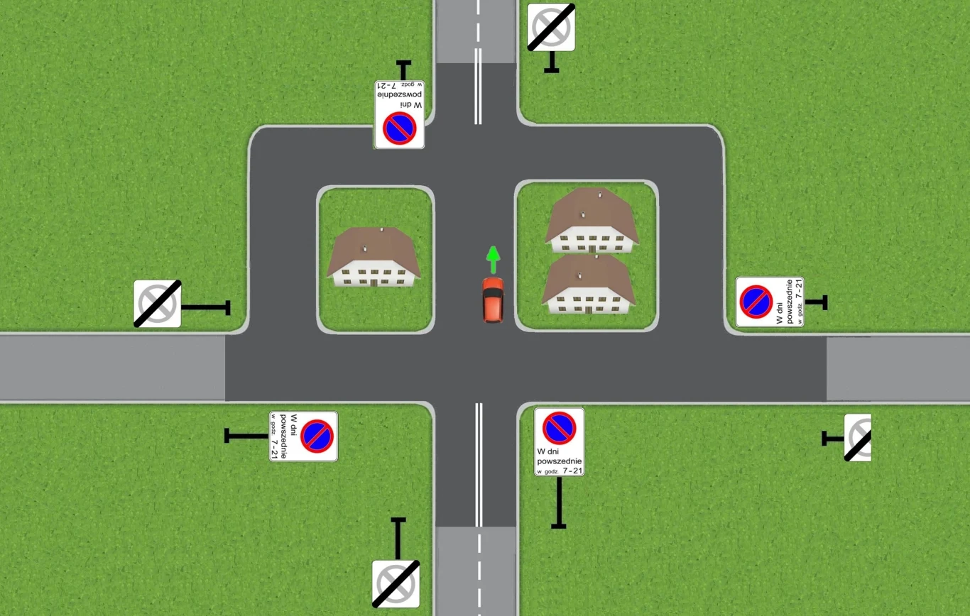 Ograniczenie prędkości w takim przypadku obowiązuje na wszystkich drogach w takiej strefie, aż do miejsca ustawienia znaku „koniec strefy ograniczonej prędkości”.