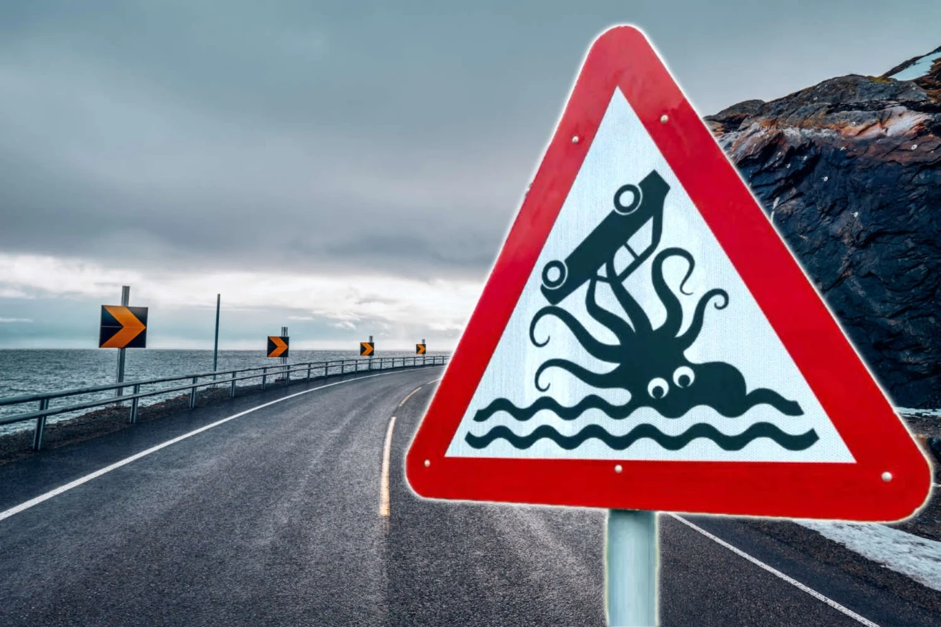 Zdjęcie tego osobliwego znaku przedstawiającego ośmiornicę stało się viralem na Facebooku, generując pod jednym z postów ponad 12 tysięcy polubień i 5 tysięcy udostępnień. Internauci żartobliwie wiązali znak z mitycznym Krakenem, legendarną olbrzymią kałamarnicą. W rzeczywistości znak ma prozaiczne znaczenie - ostrzega kierowców, że zbliżają się do morza. Mimo banalnego znaczenia znak sam w sobie stał się lokalną atrakcją turystyczną.