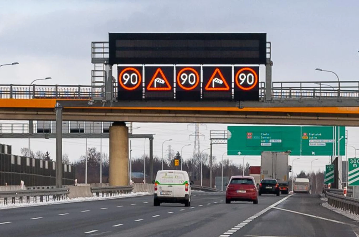 Należy pamiętać, że każda informacja podawana na znaku zmiennej treści ma swoje uzasadnienie w sytuacji na drodze. Ograniczenie prędkości może wiązać się np. z wypadkiem, pracami prowadzonymi w pasie drogowym lub silnym wiatrem.
