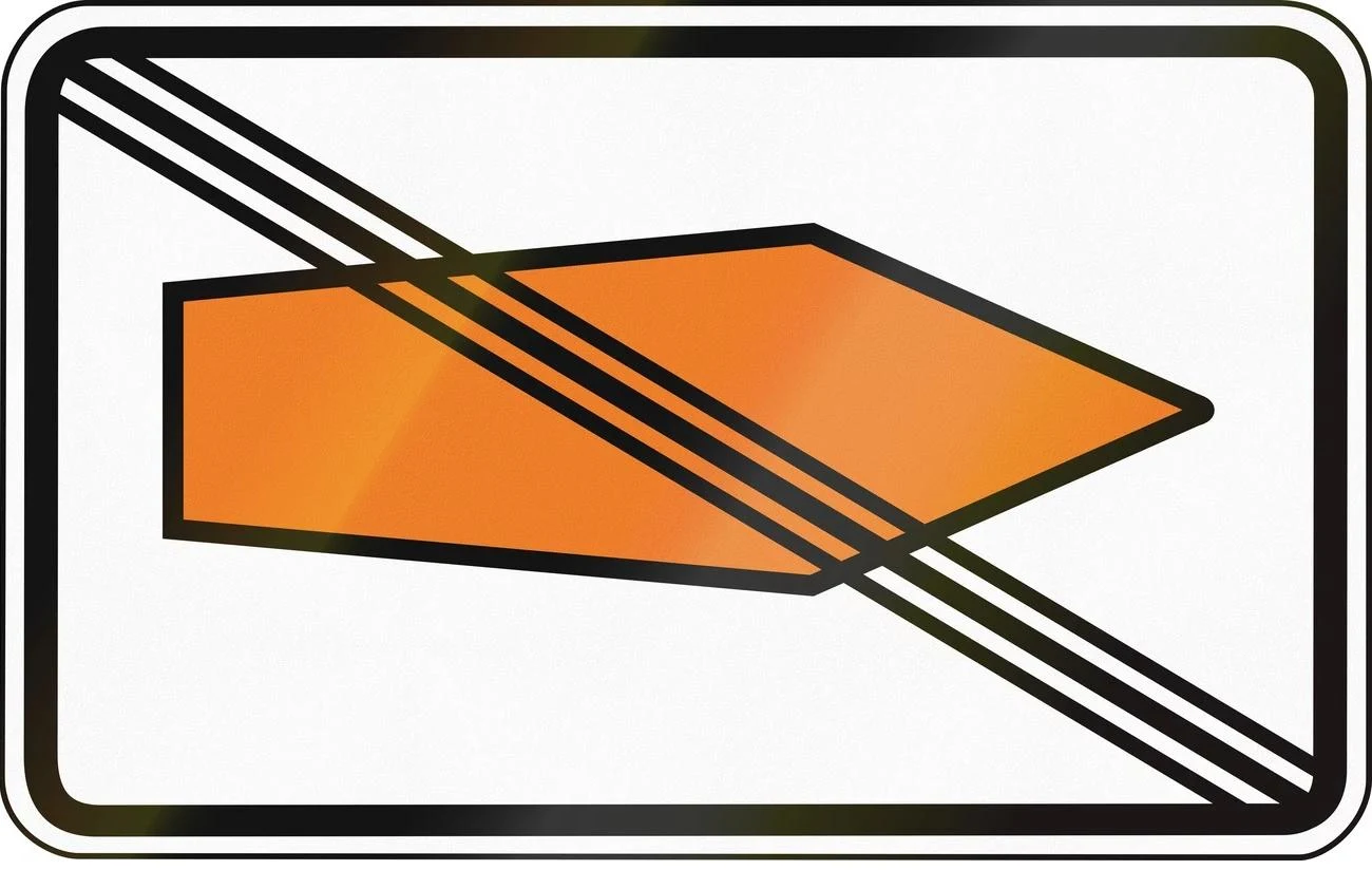 Podążając drogami wskazanymi przez pomarańczową strzałkę powinniśmy też zwrócić uwagę na znak przekreślonej pomarańczowej strzałki, która oznacza koniec objazdu.