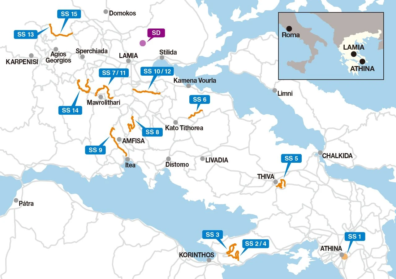 Rajd rozpocznie się w czwartek w Atenach, a uroczysta ceremonia startu zlokalizowana jest u stóp Akropolu. Następnie kierowcy i piloci zmierzą się z krótką miejską próbą wokół placu Sindagma. W piątek kierowcy przejadą pięć odcinków specjalnych, w sobotę, która jest najbardziej wyczerpującym dniem rajdu, zmierzą się z sześcioma próbami. W niedzielę na kierowców czekają trzy odcinki specjalne, w tym najdłuższy w całym rajdzie, bo liczący 33,2 km OS Pyrgos. Łącznie do przejechania będą 292 km podzielone na 15 prób.