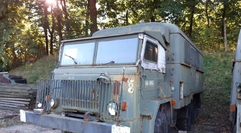 Okazja z wojska za 40 tys. zł. Auto bez koła i z maską podpartą kijem