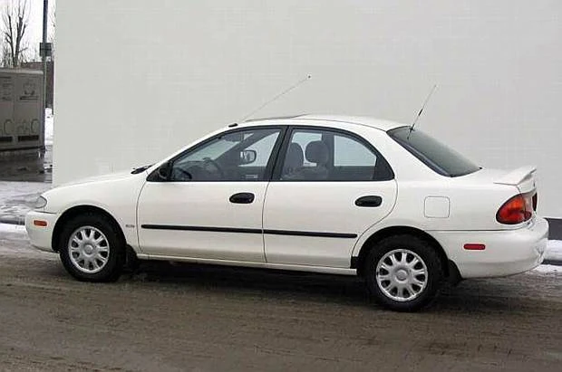 Osłony przeciwbłotne kół montowano opcjonalnie. Standardowo zaś w lewym przednim słupku znajdziemy ręcznie wysuwaną antenę radiową. Ocynkowana karoseria skutecznie broni się przed korozją, chociaż zaniedbania w pielęgnacji nadwozia mogą doprowadzić do pojawienia się śladów rdzy na tylnych nadkolach oraz górnej krawędzi przedniej szyby. Wysokiej jakości powłoka lakiernicza jest odporna na zarysowania i mimo kilkunastu lat prezentuje się dobrze. Powierzchnie drzwi, błotników i słupków skryte pod zewnętrznymi blachami dobrze zabezpieczono przed kurzem i wodą. Uwagę zwracają wzmocnienia zderzaków przystosowane do surowych amerykańskich norm - dodatkowo chronią karoserię podczas kolizji. Niestety średnica zawracania wynosi 10,9 m, przez co ciasne parkingi nie są żywiołem Protege.