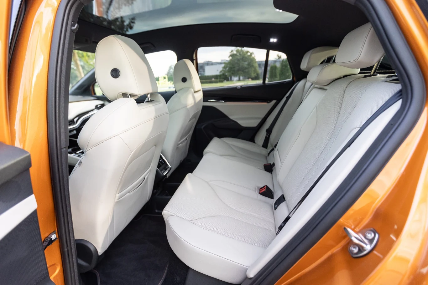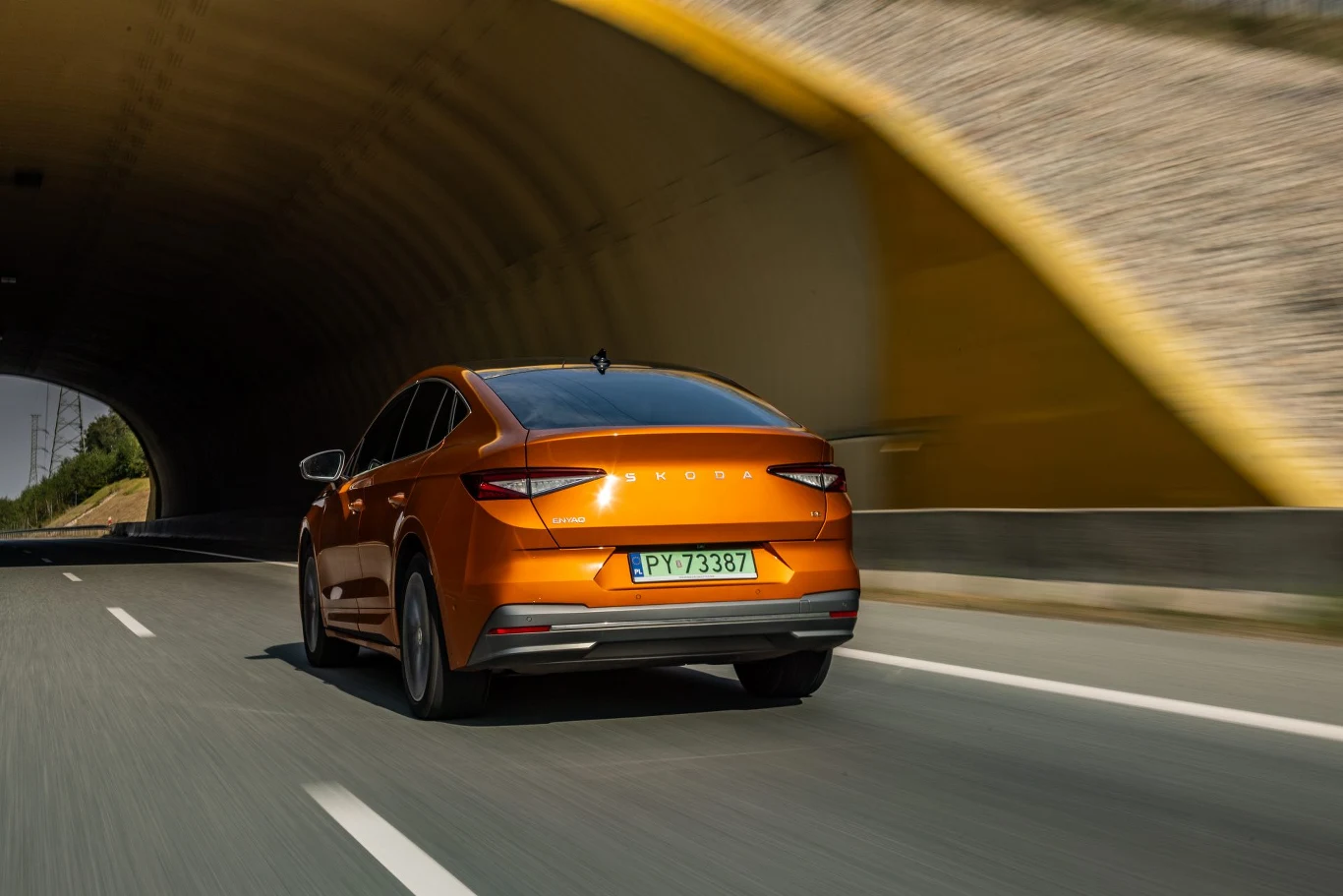 Jedno trzeba “naszej" Skodzie przyznać - w pomarańczowym kolorze Phoenix (dopłata 2050 zł) auto wyróżnia się z tłumu, a jeśli ktoś zamierza wydać prawie 300 tysięcy złotych na Skodę, to chyba nie jest to zła rzecz. Wersja coupe ma oczywiście ściętą linię dachu, co na szczęście nie wpływa ilość miejsca nad głową z tyłu, natomiast na pojemność bagażnika, względem standardowej wersji, tylko nieznacznie - ma 570 l, czyli o 15 litrów mniej niż klasyczny Enyaq. Po raz pierwszy w historii Enyaq jest też dostępny w bardziej “szlachetnej" odmianie Laurin & Klement, i choćby z uwagi na to zdecydowaliśmy się sprawdzić, czy warto dopłacać do niej 32 000 zł.