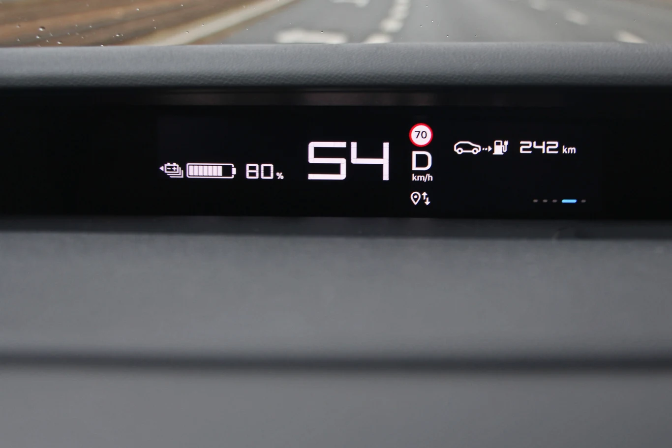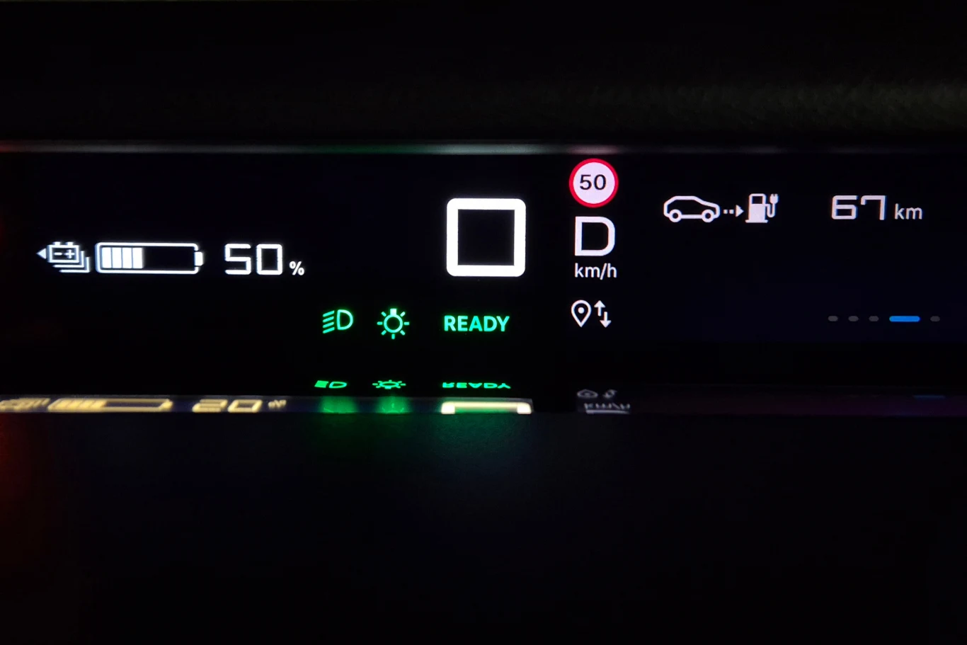 Zaskakująco ubogi w opcje jest system multimedialny, gdzie znajdziemy tylko dostęp do radia, telefonu, nawigacji oraz ustawień samego ekranu. Wynika to z faktu, że wersja bazowa nie ma multimediów (tylko uchwyt na telefon), więc jedyne ustawienia pojazdu znajdziemy na wyświetlaczu wskaźników. Z tego też powodu klimatyzacja ma osobny panel.