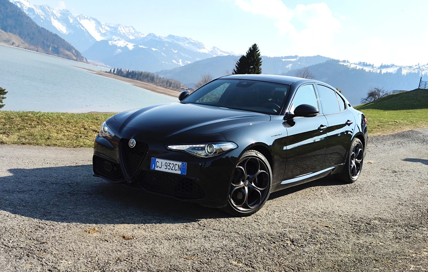 Także wewnątrz można zauważyć połączenie styli Veloce oraz Quadrifoglio. Większość elementów (deska rozdzielcza, dźwignia zmiany biegów, podłokietnik) zostało wykończone skórą z kontrastowym, czerwonym przeszyciem. Tu i ówdzie znajdziemy karbonowe nakładki, a sportowe fotele są dostępne w wersji pokrytej Alcantarą. Nie zabrakło także 14-głośnikowego systemu nagłośnienia Harman Kardon. Wśród dostępnych lakierów znalazły się odcienie czerwonego Alfa Rosso, białego Alfa White, czarnego Volcano Black Metallic i niebieskiego Misano Blue Metallic.