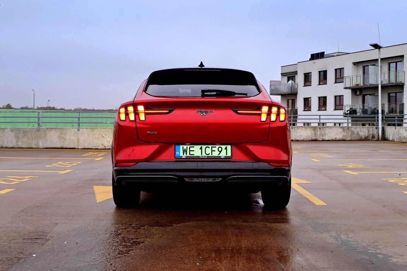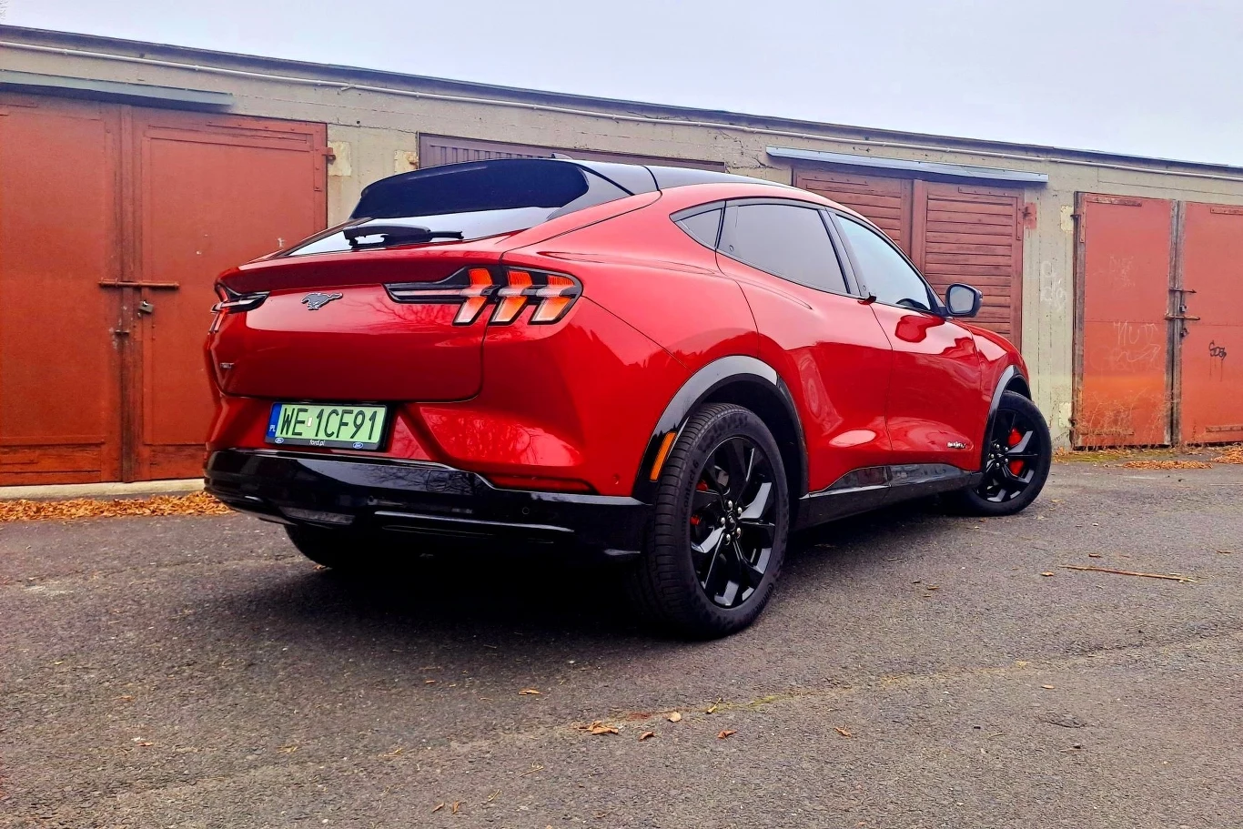 Testowany przez nas egzemplarz Forda Mustanga Mach-E oferuje 351 KM, 580 Nm i napęd na cztery koła. Samochód rozpędza się do 100 km/h w 5,8 sekundy i może jechać z prędkością 180 km/h. Za magazynowanie energii odpowiada akumulator o pojemości użytecznej 91 kWh. Deklarowany zasięg wynosi 550 km. Samochód jest w stanie przyjąć prąd stały o mocy 150 kW. Wówczas uzupełnienie energii z poziomu 10 do 80 proc. zajmuje 45 minut.