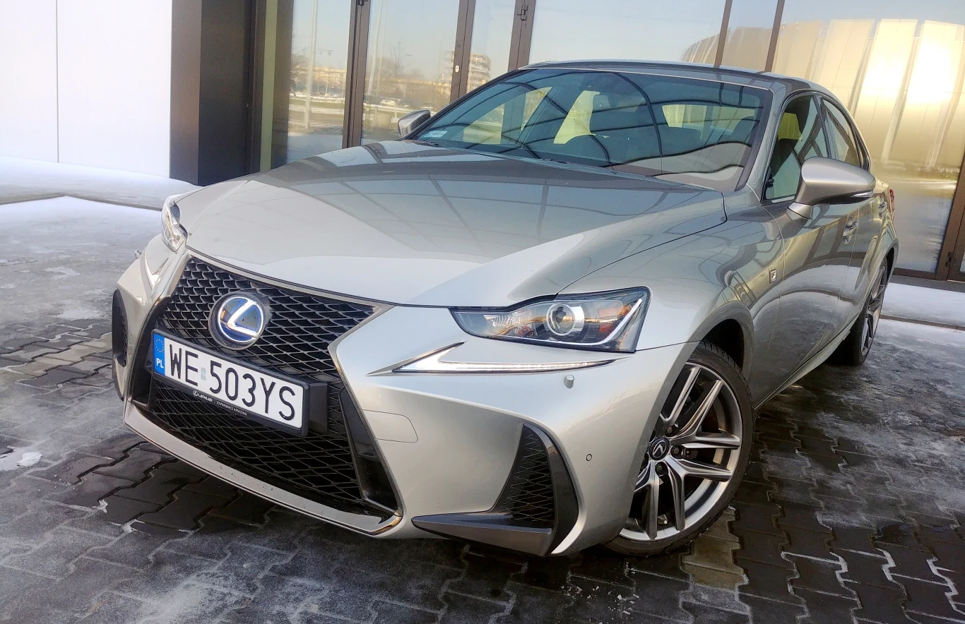Ciekawie rozwiązane wirtualne zegary, które nie są tylko ekranem, ale rozwiązaniem hybrydowym - mechaniczno-elektronicznym. Zmieniając wygląd fizyczne okrągłe obramowanie ekranu przesuwa się, robiąc miejsce na nowe elementy.Fotele są wygodne, błyskawicznie dają się ustawić do preferencji kierowcy. Generalnie za kierownicą Lexusa IS bardzo szybko można się poczuć, jak u siebie w domu.Nie oznacza to jednak, że Lexus IS nie ma wad. Wyżsi pasażerowie mogą narzekać na ilość miejsca na tylnej kanapie i to zarówno na wysokości kolan, jak i nad głową. Przydałaby się również większa liczba schowków, te w przednich drzwiach nie zmieszczą butelki z wodą, a z tyłu nie ma ich wcale. Środkowe miejsce z tyłu jest praktycznie niefunkcjonalne ze względu na szeroki środkowy tunel. Pojemność bagażnika to 450 litrów, o 30 litrów mniej niż w IS-ach z klasycznymi silnikami spalinowymi.