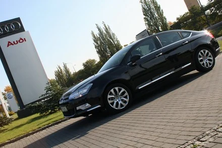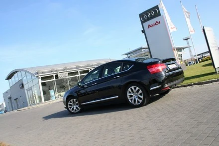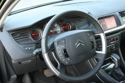 Ortodoksyjnych fanów marki rozczaruje wnętrze. Jedyne francuskie akcenty, jakie można w nim odnaleźć to naszpikowana bajerami kierownica z nieruchomym środkiem, daszek zegarów przypominający CX-a oraz nieodparte wrażenie, które określić można - z francuska - mianem "deja vu". Po krótkiej przejażdżce dojedziemy do wniosku, że większości rozwiązań zdecydowanie bliżej jest do Reichstgu niż Wersalu. Zarówno czcionka zegarów, jak i wyświetlacz informujący nas o poziomie oleju i trybie pracy automatycznej skrzyni biegów do złudzenia przypominają rozwiązania stosowane przez Mercedesa. Znajomy wydaje się też być panel sterowania dwustrefową klimatyzacją. Podobne, od kilku lat stosuje m.in. Audi. Nawet wszechpanująca czerń jasno wskazuje, że projektanci wnętrza nad czerwone wino i żabie udka przedkładali zimny browar i tłustą golonkę. Nie jest to jednak wada, bo wnętrzu naprawdę niewiele można zarzucić. Ergonomia nie daje powodów do narzekań, normalne użytkowanie nie wymaga wertowania liczącej setki stron instrukcji obsługi.