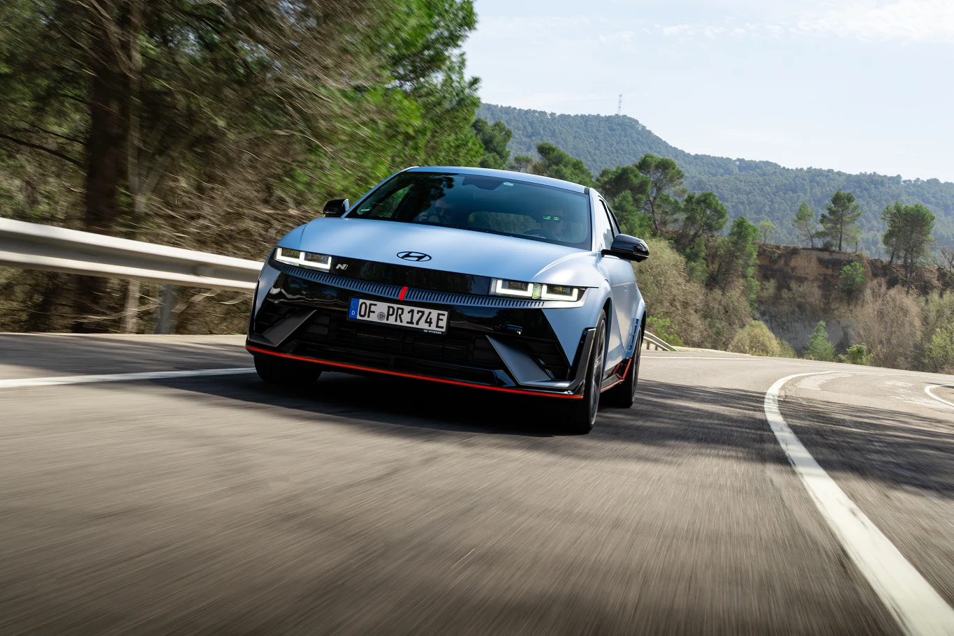 Rasowy wygląd to jednak nie wszystko - elektryczny debiutant z “N-ką" w nazwie robi wrażenie również na papierze. Sportowiec zaprojektowany na platformie E-GMP jest wyposażony w dwa silniki elektryczne o łącznej mocy 609 KM i 740 Nm momentu obrotowego (przód - 226 KM, tył - 383 KM). Po aktywacji trybu NGB (N Grin Boost) te wartości na 10 sekund wzrastają do 650 KM i 770 Nm momentu obrotowego. Z takim zapleczem ważący ponad 2200 kg hatchback, z wykorzystaniem funkcji “Boost", przyspiesza od 0 do 100 km/h w 3,4 sekundy i osiąga prędkość maksymalną 260 km/h. Na przedniej osi znalazły się tarcze o średnicy 400 mm otulone 4-tłoczkowymi zaciskami, zaś z tyłu zastosowano tarcze o średnicy 360 mm i 1-tłoczkowe zaciski pływające.