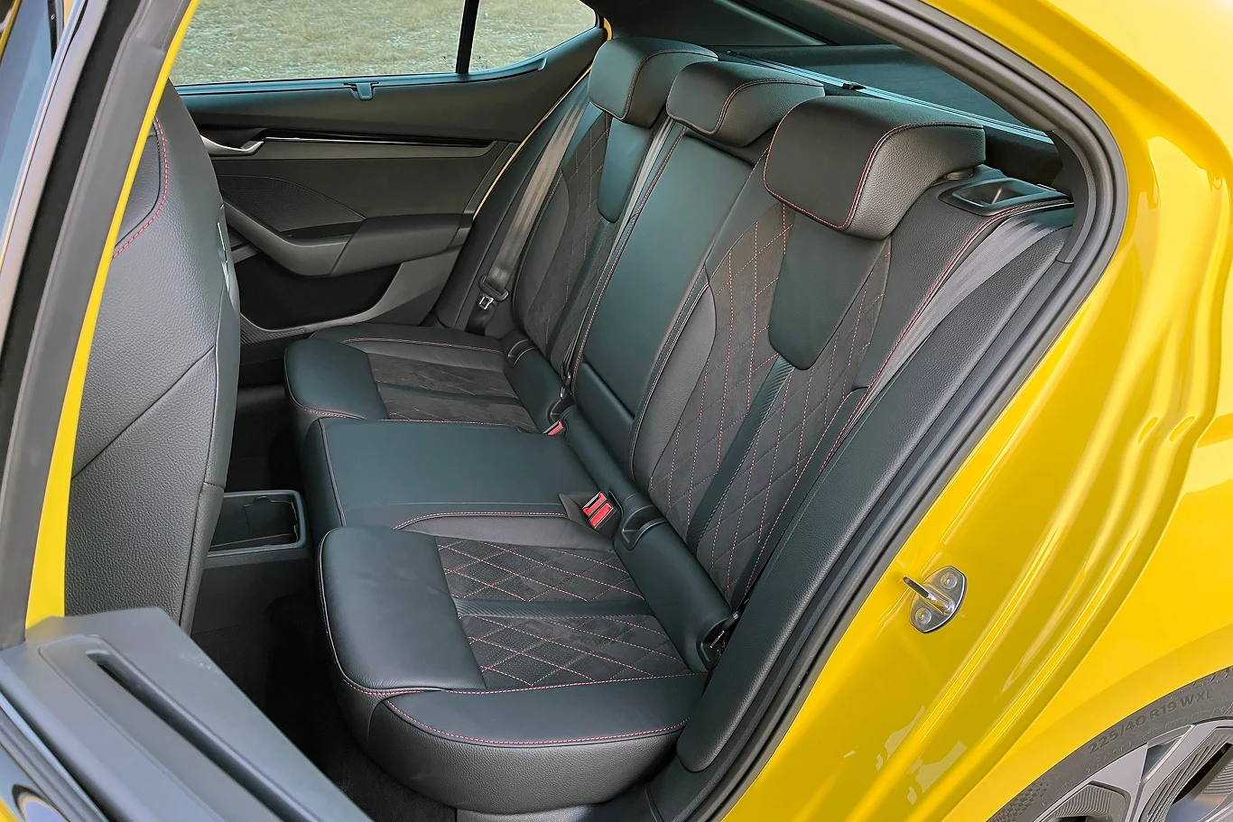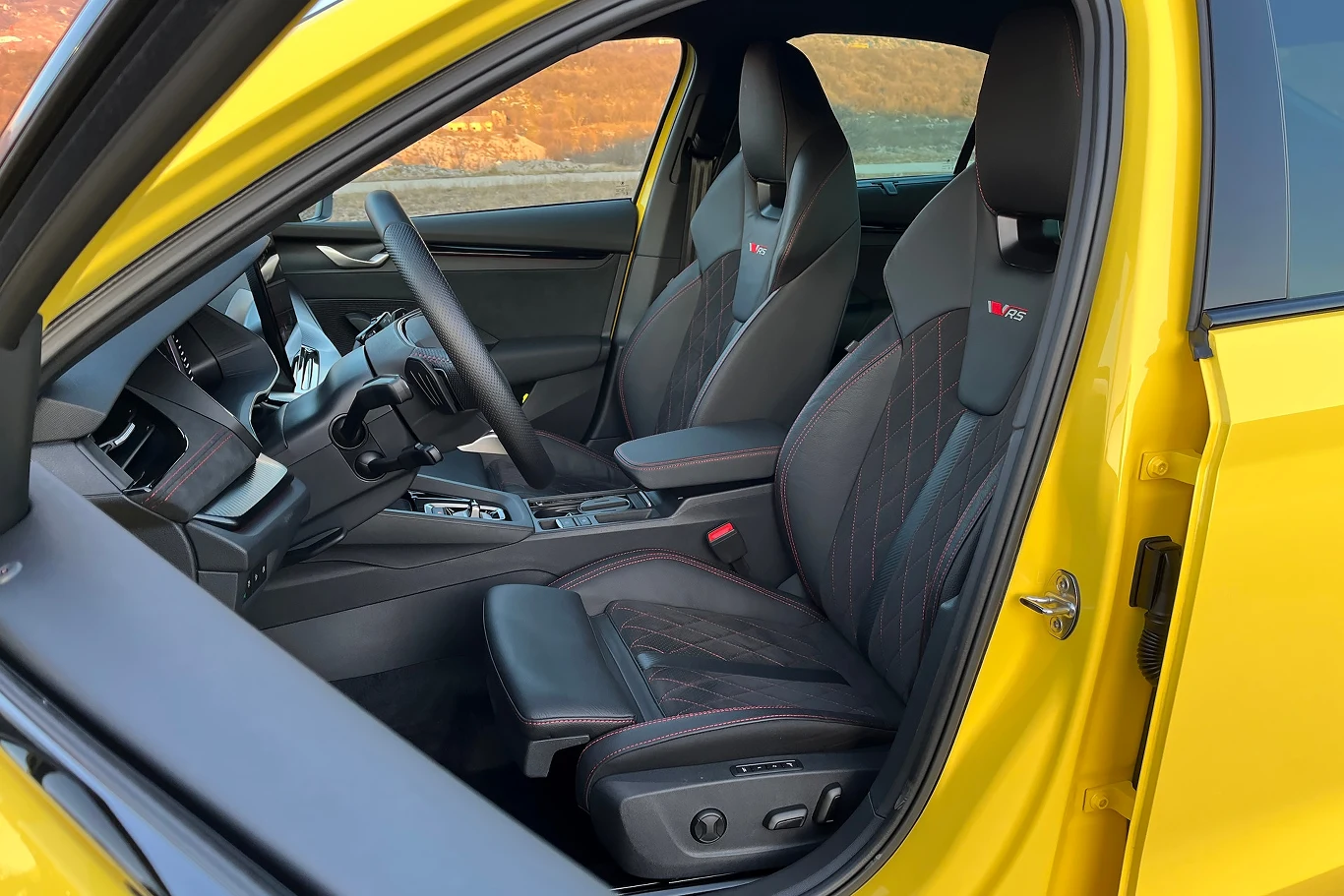 Te standardowo pokryto pikowaną tapicerką materiałową z czerwonymi przeszyciami, natomiast w opcjonalnym wykończeniu Suedia zastosowano perforowane obicie ze sztucznej skóry. Co jednak najistotniejsze, nowe fotele nie tylko zapewniają lepsze trzymanie boczne podczas dynamicznej jazdy, ale także zaskakują komfortem. Połączenie sportowej stylistyki z wygodą bywa trudne, jednak w przypadku Octavii RS udało się to osiągnąć wzorowo.