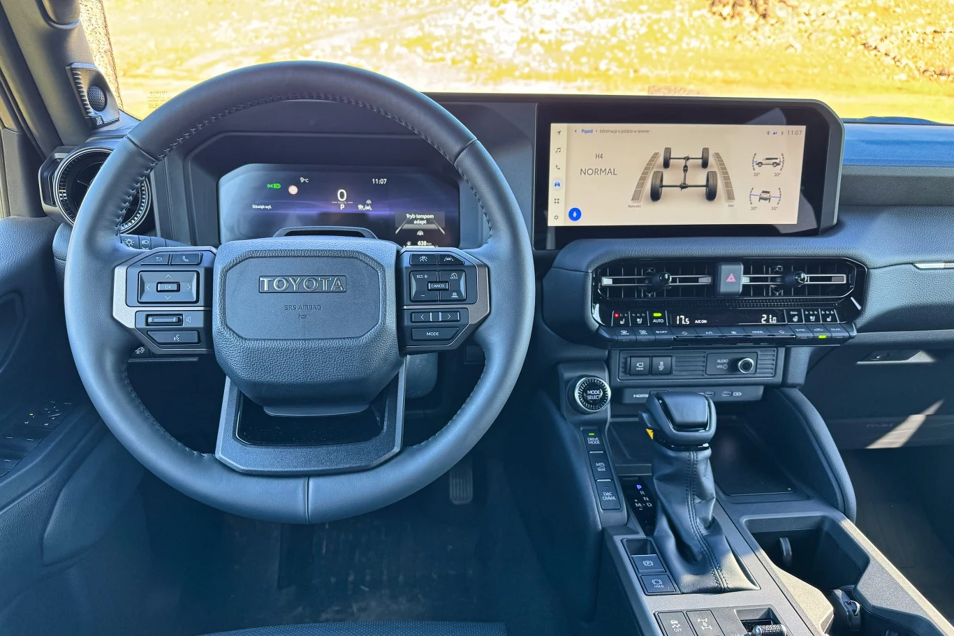 Tę próbę pogodzenia dwóch światów widać też we wnętrzu Land Cruisera. Duże ekrany połączono z mnóstwem fizycznych przycisków i pokręteł. Jest trochę nowocześnie, ale jednak intuicyjnie. Tto połączenie sprawdza się bardzo dobrze, nie odniosłem wrażenia, żeby Toyota próbowała na siłę przypodobać się którejś grupie klientów. Do tego skórzana tapicerka foteli, mnóstwo miejsca w kabinie i niezłe wyciszenie nadwozia sprawiły, że autem podróżowało się naprawdę komfortowo. Na tyle, na ile komfortowym można nazwać wciąż "ciężarówkowy" charakter terenówki na ramie. Na listę zalet trzeba też wpisać bagażnik – ma aż 742 litry pojemności.