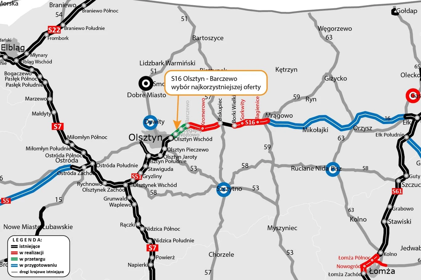 GDDKiA wybrała najkorzystniejszą ofertę w przetargu na przebudową drogi krajowej nr 16 w ekspresową drogę S16 na odcinku Olsztyn - Barczewo. W ocenie GDDKiA, złożył ją Budimex, który realizację prac na liczącym 11,4 km odcinku wycenił na 507 mln zł.