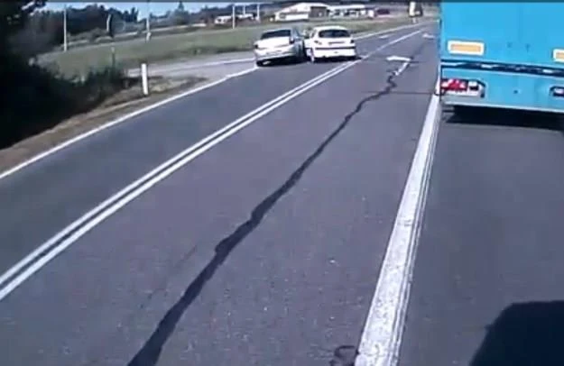 Cała sytuacja została nagrana przez kamerę zamontowaną w samochodzie jadącym za Peugeotem.