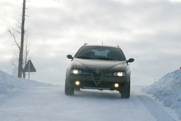 Jak już pisaliśmy w relacji z Arjeplog, gdzie na zamarzniętym jeziorze odbywają się próby fiata pandy 4x4 ostatni szlif przed-produkcyjny przechodzi tam także napędzana na cztery koła alfa romeo 156 o nazwie Crosswagon. Pojazd ten, który zaprojektowany został przez Centrum Stylistyczne z Arese to połączenie samochodu typu SUV (Sport Utility Vehicle) z typowym Station Wagon czyli kombi.