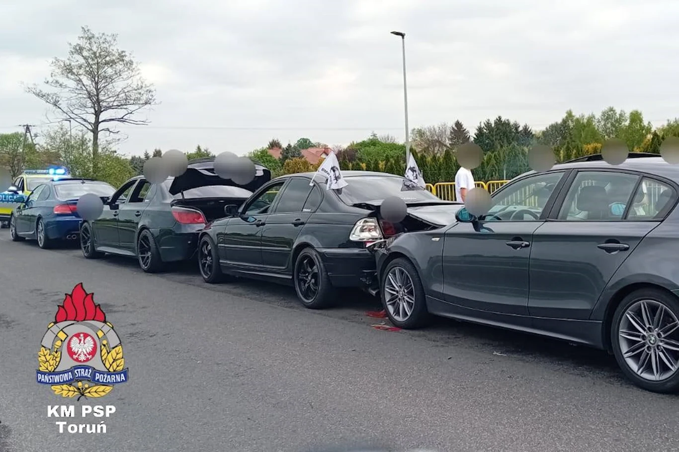 Wypadek miał miejsce około godziny 7.00. Na ulicy Toruńskiej w Wielkiej Nieszawce pod Toruniem. Zderzyły się cztery jadące w tym samym kierunku samochody BMW: serii 1, serii 3, serii 5 i serii 3 coupe.