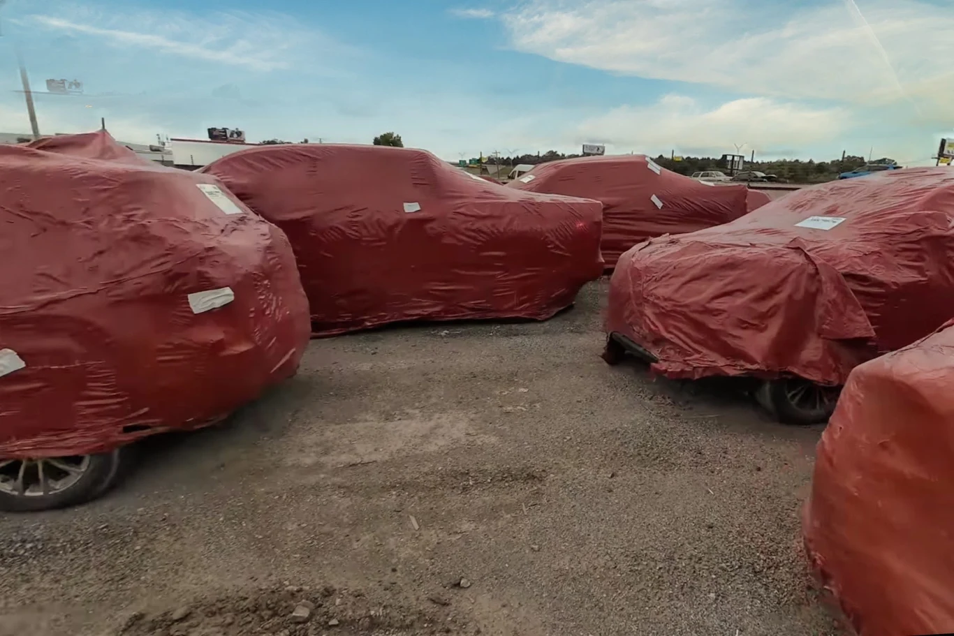 Youtuber pojechał na plac domu aukcyjnego poszukać kolejnego samochodu do projektu. Jego uwagę przyciągnął parking wypchany samochodami pieczołowicie przykrytymi czerwoną folią. Co to za pojazdy?