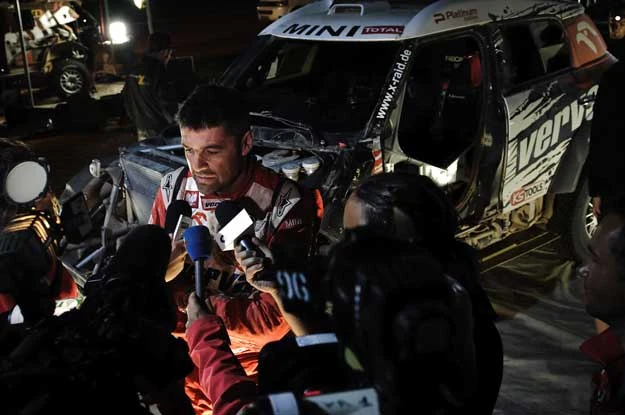 - Drugi raz z rzędu omija mnie podium. Przyczyną był mały przewód od wspomagania układu kierowniczego i jednocześnie hydraulicznego systemu podnoszenia samochodu w razie zakopania w ciężkim terenie. Ten przewód pękł i wypłynął z niego olej, nie miałem wspomagania przez wiele godzin walcząc po bardzo wymagających wydmach. Nie czuję rąk. Nie mogąc skręcać nie byliśmy w stanie ominąć ciężarówek stojących jedna przy drugiej. Stanęliśmy i się zakopaliśmy. Jedna z ciężarówek próbowała nas wyciągnąć, wtedy strzeliła lina i niczym pocisk uderzyła w naszą chłodnicę przebijając ją. Nie mogliśmy nic zrobić, musieliśmy czekać wiele godzin na samochód T4.