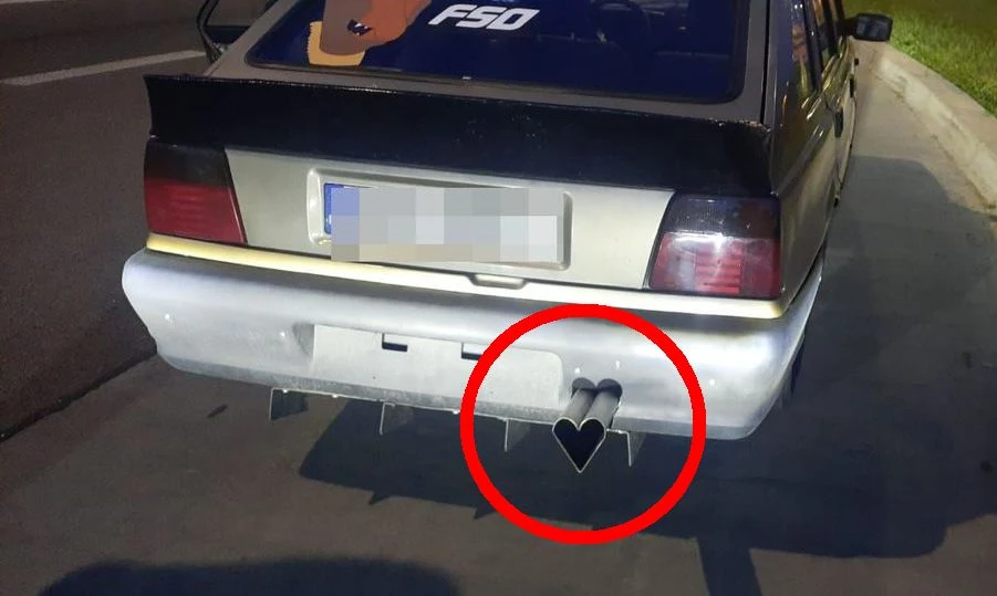 Podczas oględzin policjanci zwrócili szczególną uwagę na bardzo nietypowy kształt tłumika Poloneza. Rura końcowa, mocno wystająca poza obrys samochodu była bowiem w kształcie serca. Policjanci drogówki pozostali jednak niewzruszeni na romantyczny charakter samochodu i kierowcy nie udało się uniknąć kary.