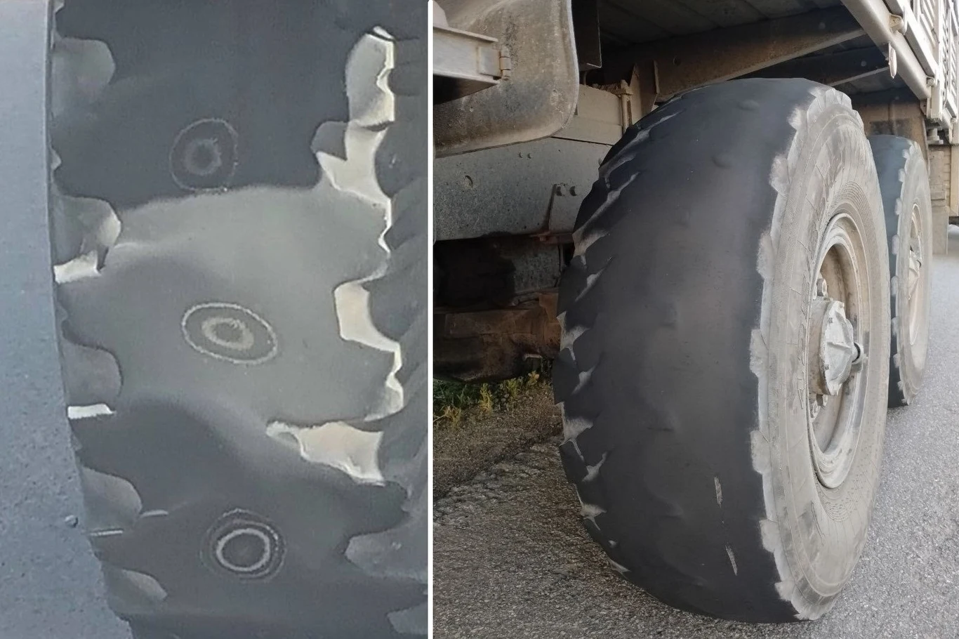 Dziwne opony rosyjskich ciężarówek. Powinny dawno trafić do pieca
