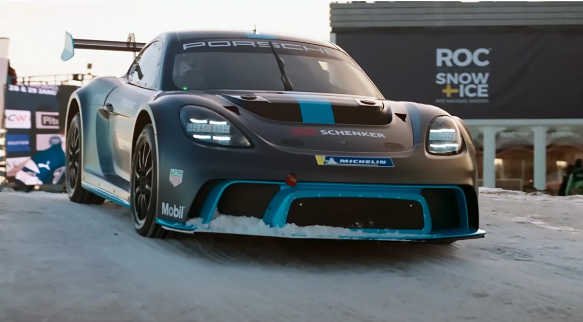 Elektryczne Porsche GT4 e-Performance. 1000 KM na śnieżnym torze