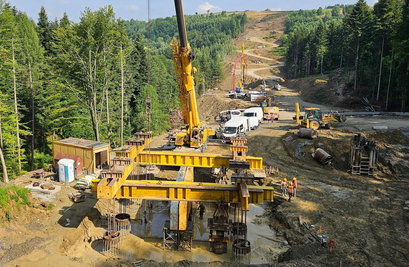Na budowie przeprowadzono już próbne obciążenie pali posadowienia pośredniego podpór. Pal testowy poddawany jest obciążeniu, którego wartość zwiększana jest do osiągnięcia jego nośności obliczeniowej. Następnie siła nacisku jest stopniowo odpuszczana do zera po czym ponownie obciążana do wyższej wartości. Przemieszczenia rejestrowane są podczas każdego cyklu zmiany obciążenia.