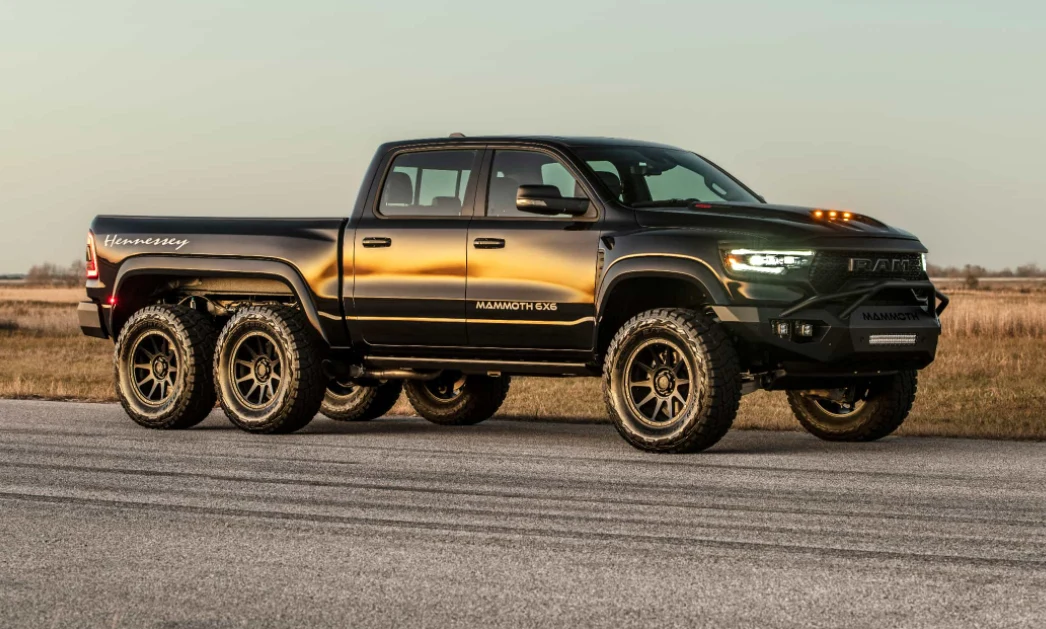 Hennessey Mammoth 1000 6x6 TRX to sześciokołowa bestia, napędzana 6,2-litrowym silnikiem V8, wspieranym 2,65-litrową sprężarką. Liczne modyfikacje jednostki występującej standardowo we wspomnianym wcześniej RAM-ie, skutkowały osiągnieciem wręcz absurdalnej mocy 1012 KM. Gigantyczny jest także moment obrotowy, który plasuje się w okolicach 960 Nm.
