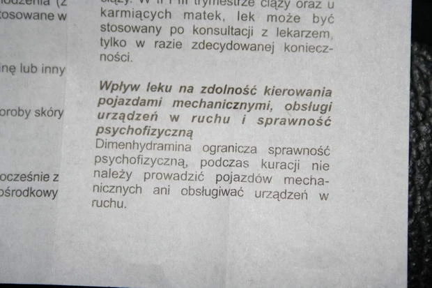 Ci z prowadzących pojazd, którzy chorują przewlekle i zażywają lek, od dawna doskonale wiedzą, jak wpływa on na samopoczucie i czy po jego przyjęciu można zajmować miejsce za kierownicą samochodu. Często jednak zdarza się tak, że łykamy pastylki doraźnie, nie dbając o to, co na ich temat ma do powiedzenia lekarz i czy akurat nie wpływają one ujemnie na naszą sprawność za kierownicą. Tymczasem wiele leków, których nie podejrzewalibyśmy nawet o to, obniża kondycję zarówno fizyczną, jak i psychiczną kierowcy. Wówczas to zaczynają się kłopoty z koncentracją, zaburzeniami wzroku, słuchu, sennością i opóźnieniem czasu reakcji, słowem - tym wszystkim, co w przypadku kierującego samochodem tak ważne i istotne.