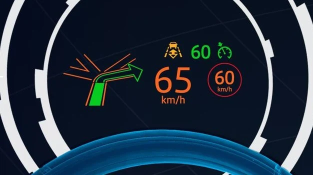 Kierowca będzie miał do dyspozycji laserowy, kolorowy wyświetlacz typu head-up (fot. u góry), wyświetlający na przedniej szybie podstawowe informacje dotyczące jazdy, takie jak prędkość czy wskazówki nawigacyjne.