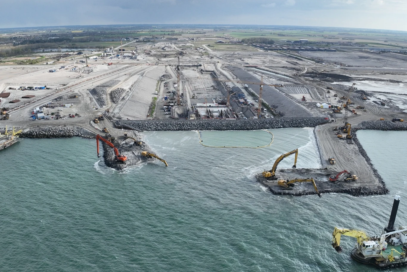 Na potrzeby budowy w Danii powstała specjalna fabryka tuneli, zatrudniająca ponad 2000 pracowników z różnych krajów, w tym z Polski. Zaplecze budowy zajmuje ponad 2 km kwadratowe. Przez port roboczy w Puttgarden przetransportowano już ponad 500 tys. ton materiałów, głównie cementu, piasku, żwiru i kamienia.