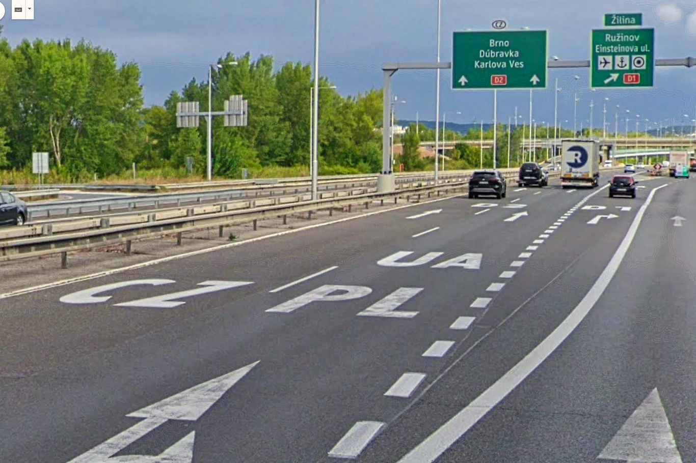 Na sprytnie skadrowanych zdjęciach faktycznie widać, że na asfalcie na pasie skrętu w kierunku autostrady A4 pojawiły się wielkie napisy UA. To wystarczyło, by autorka nazwała go ukraińskim. Z treści dowiadujemy się, że na pasie obok pojawiła się natomiast litera D.