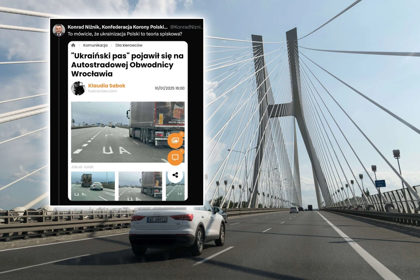 Konrad Niżnik przyjął narrację narzuconą przez lokalny serwis tuwroclaw.pl, który opublikował artykuł o „ukraińskim pasie” na Autostradowej Obwodnicy Wrocławia.