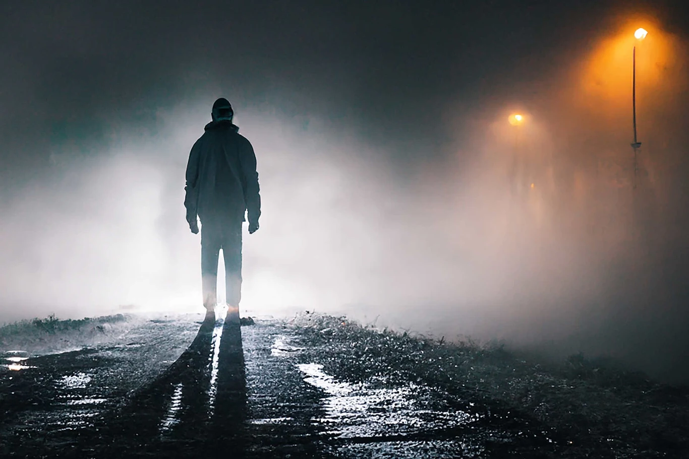 - w zupełnej ciemności,